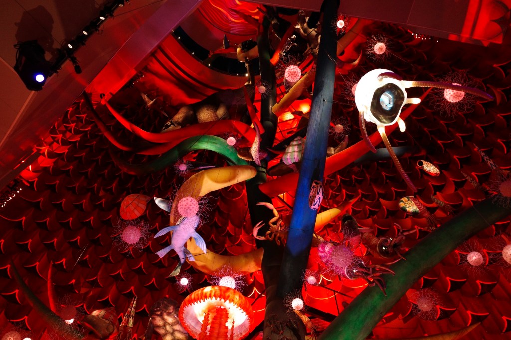 予約購入しておいたチケットで塔内に入る。内部の公開が始まったのは耐震等のリニューアル工事を経た2018年だという。塔内に〈生命の樹〉という名の巨大なインスタレーションがあることを知らなかった。塔の製作過程のスケッチや会議の様子の写真なども展示され、どれも臨場感が伝わってくるものだった。
