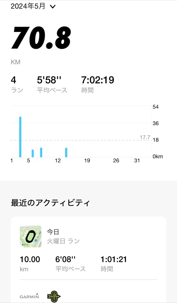 1時間走って、今月の走行時間は7時間。登山に行った分、ランが滞った。月の後半はランの頻度をあげよう。