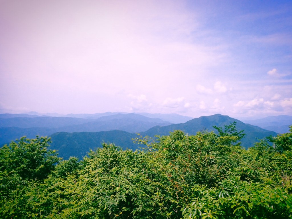 ということで、大岳山(1266メートル)にはあっけなく到着。東京から見ると特徴的な尖った山容をしているから、昔には東京湾を出入りする船の目標でもあったらしい。南に見えるはずの富士山は雲に覆われていた。その開けた方角に向かって古い歌を歌っているおっちゃんもいて、のどかな山頂だった。地図を見ながら1時間ほど過ごした。