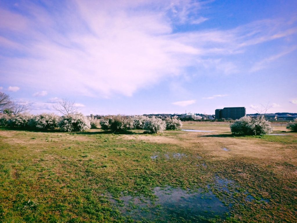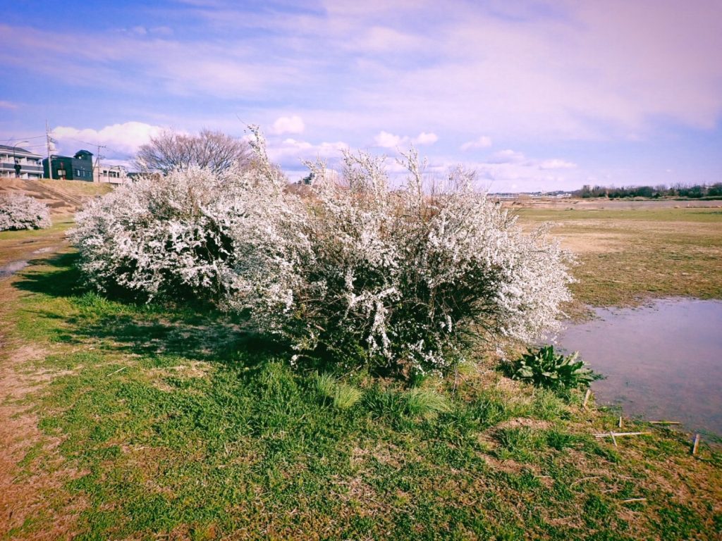 多摩川左岸(調布側)の土手の舗装路から下りて河川敷の土の上を走った。ユキヤナギとオオイヌノフグリがきれいに咲いていた。ソメイヨシノはあと3、4日で開花というところか。
