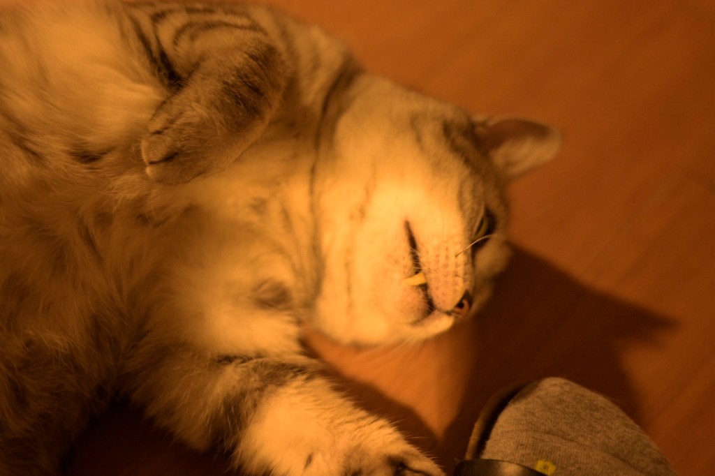 深夜1時過ぎ、ようやく机を離れた飼い主に対して、猫はこの顔である。哀れというのか、同情をさそう。18時からは仕事にナイターにF1にと、忙しかった。