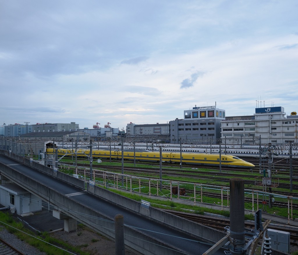 I saw the Doctor Yellow Shinkansen moving slowly through the depot.