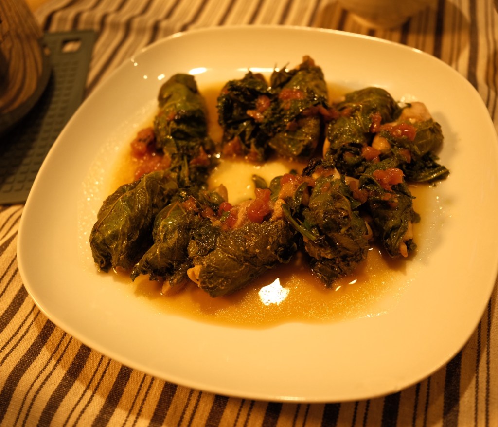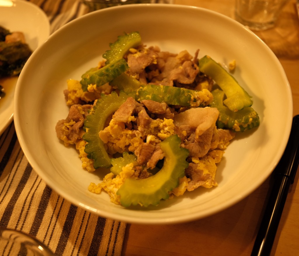 夜は、モロヘイヤのサラダ、ゴーヤチャンプルー、鶏肉の大葉包み焼き、玉ねぎとオクラの味噌汁。どれも抜群に美味かった。鶏肉はポン酢と酒に漬けて下味をしっかりと付けてから大葉で巻いた。焼きながら梅肉を加え、薬味としてさらに大葉を振りかけた。