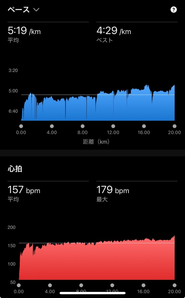 ナイターのあとで走る。暑さを感じずにトレーニングをするのは久しぶりのことだ。夜風が心地よかった。多摩川の土手での20キロ走とクール・ダウンのジョグを3キロ、締めて23キロのラン。20キロ走の後半はキロ5分のペースを保った。骨盤から上を前傾し、脚を後ろに置いていくフォームを強く意識して走った。狙い通りの走りができて満足だ。