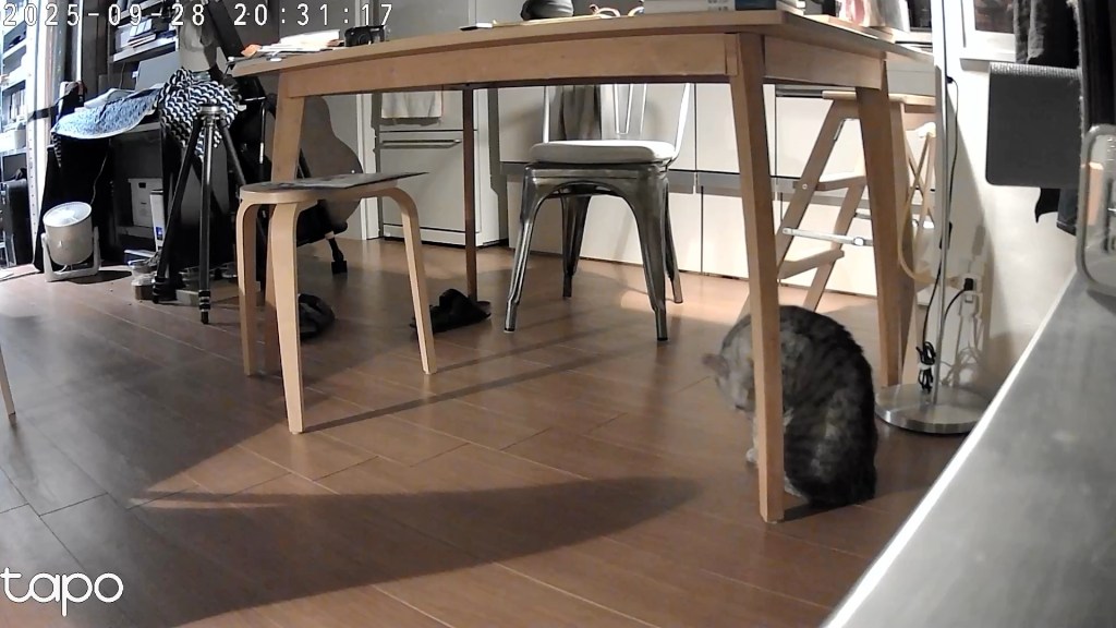 我が家において、猫が出張先の飼い主に通信する手段は、ペットカメラに映る範囲で過ごすか、トイレを使用するか、の2つである。