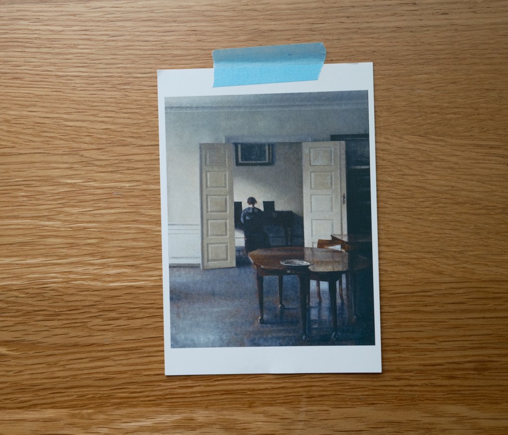 What came to mind was Vilhelm Hammershøi’s Interior with Ida Playing the Piano.