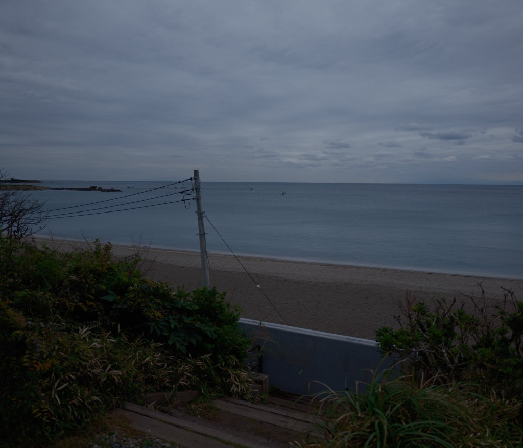 一通り観て庭に出ると、そこにいた先客が、いやーん、あはーん、などと吐かしながら写真を撮っている。上田さんの写真によってたまらない気持ちになったらしい。そりゃそうだ。ぼくたちもとうぜんフロム・ザ・ヒップで海などを撮った。