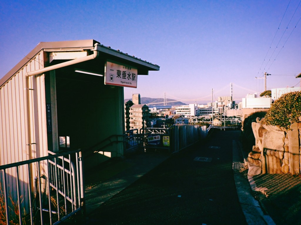 元町から30分ほどで着く。海岸線の高台にあるホームからは海が見渡せる。なるほどこれはいい駅だ。あの人たち、これをぼくに見せたかったのね、と思うと愉快だ。昇ったばかりの朝日をたっぷり浴びる。明石海峡大橋も線路の奥に見えている。橋の最寄りの駅はここからさらに3つか4つ先だが、この駅から歩いていくことにして改札を抜ける。