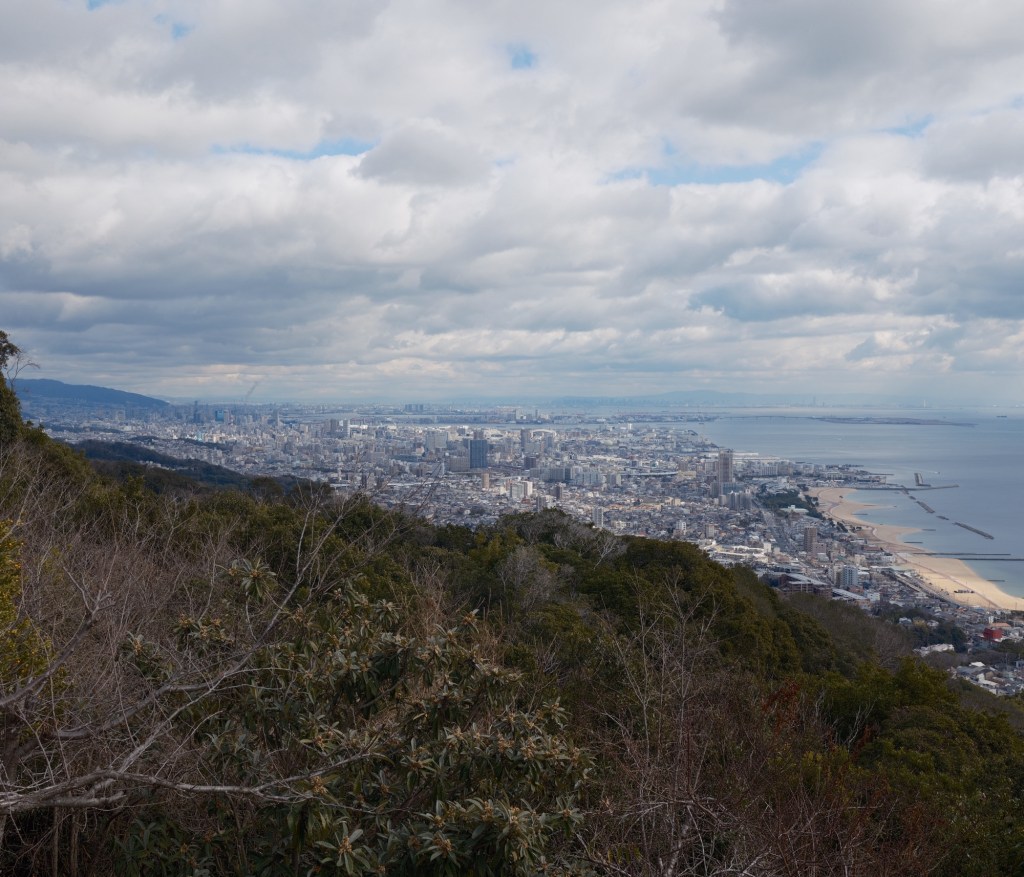 神戸市街地側を見渡す。このまま山の中を三宮の裏手あたりまで行くつもり。