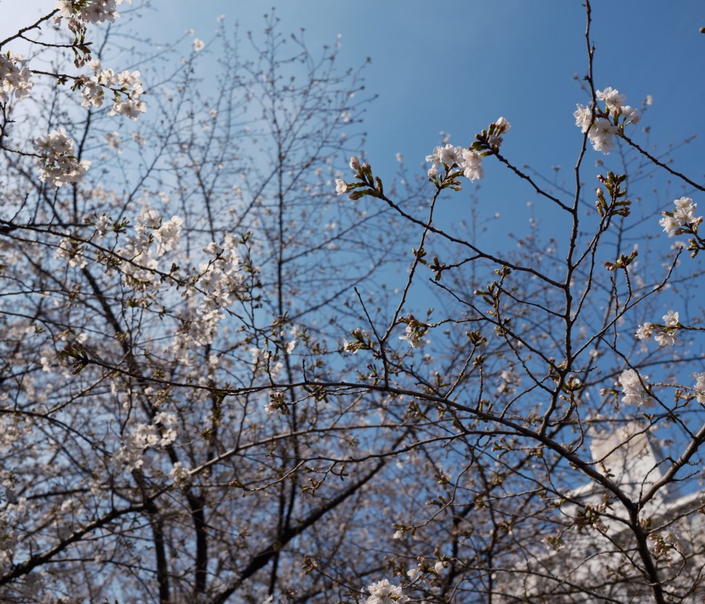 日向はシャツ一枚で過ごせるほど暖かかった。都心のソメイヨシノは5分咲きといったところか。