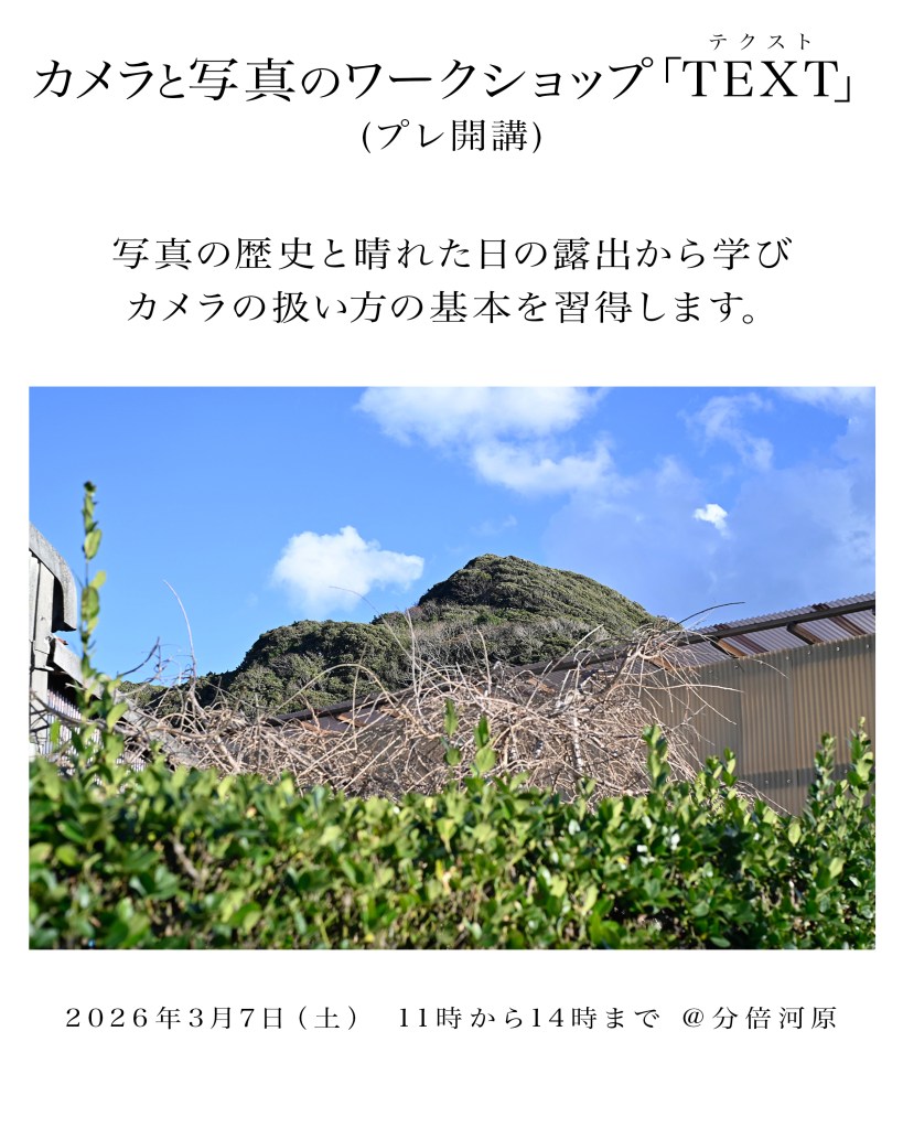 何日か前からしれっと告知を始めたのですが、カメラと写真のワークショップ「TEXT」を2026年3月7日の土曜日に分倍河原で開催することになりました。 「TEXT」 と書いてテクストと読みます。なにかい…